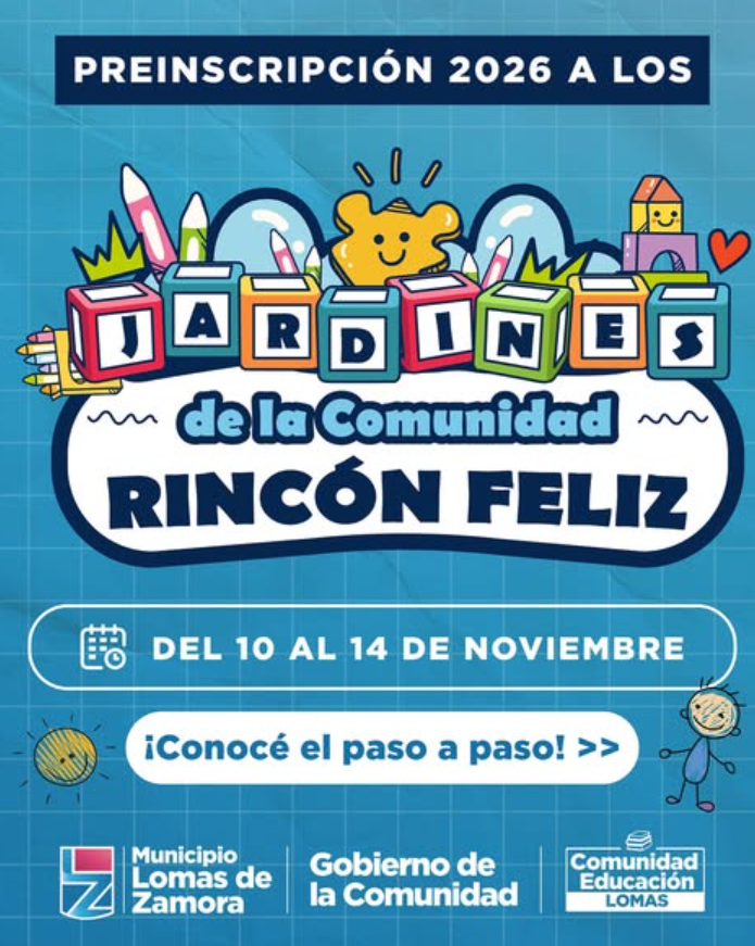 Hasta el 14 de noviembre hay tiempo para realizar la inscripción para los Jardines de la Comunidad del Municipio de Lomas de Zamora. Las familias pueden anotar de forma online a sus hijos e hijas para el ciclo lectivo 2026 en cualquiera de las 18 sedes que brindan educación inicial sin costo en el Municipio.